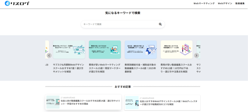 リスログは、ITスクールやプログラミング、Webデザイン、Webマーケティング、動画編集などに特化した口コミ・比較型の学習支援メディアです。