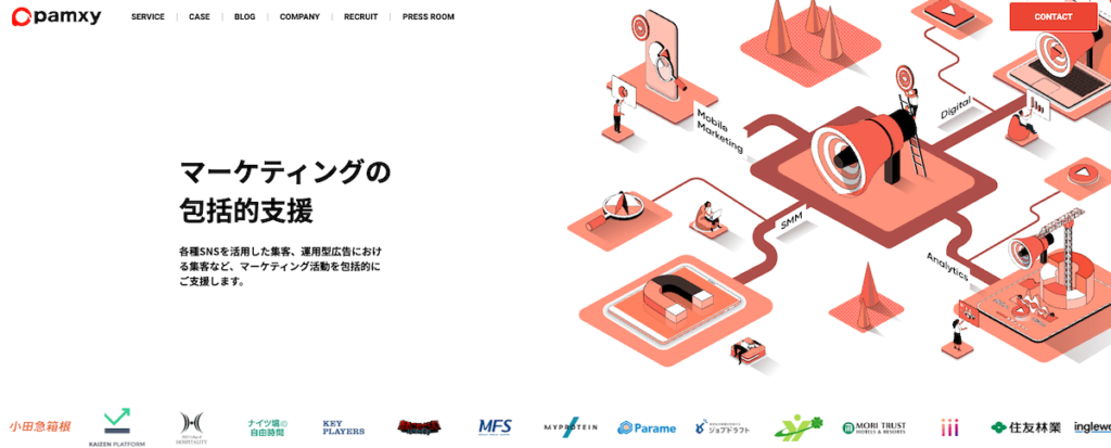 株式会社pamxyは、YouTubeやTikTokをはじめとしたSNS運用代行や運用型広告など、マーケティング活動を包括的に支援する企業です。