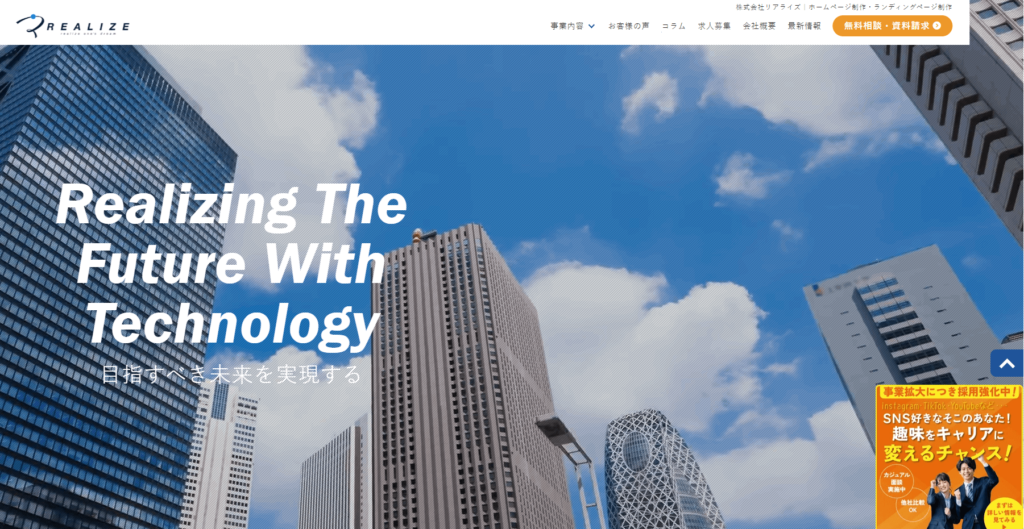 株式会社リアライズは、ホームページ制作、MEO対策を始めとしたWebマーケティング事業を行う会社です。