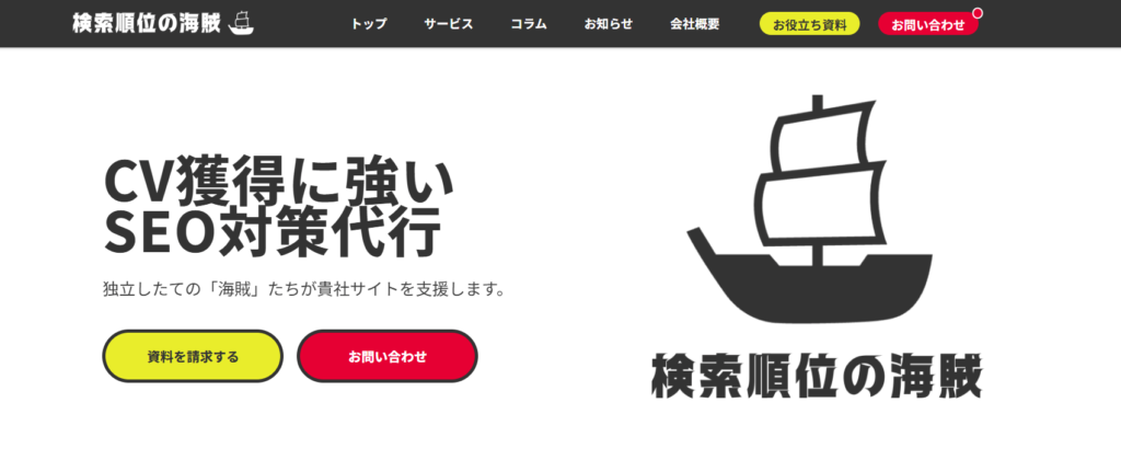 | 株式会社検索順位の海賊 | 売上へ直結するWebマーケティング支援を行う専門会社。検索順位の向上自体を目的とせず、「流入最大化×CV最大化」を一気通貫で設計する点が強み。 |